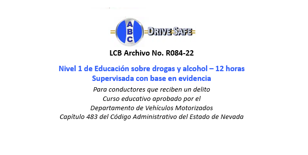 Este curso de Nivel 1 cumple con todos los criterios requeridos para los proveedores de educación sobre DUI aprobados por el estado de Nevada, incluyendo: