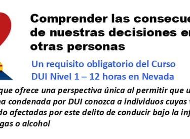 La participación en este evento le permite a usted, como persona que ha cometido una DUI (Driving Under the Influence, es decir, conducir bajo los efectos del alcohol o las drogas), comprender lo que puede suceder cuando conducir en estado de ebriedad o bajo influencia provoca una tragedia.